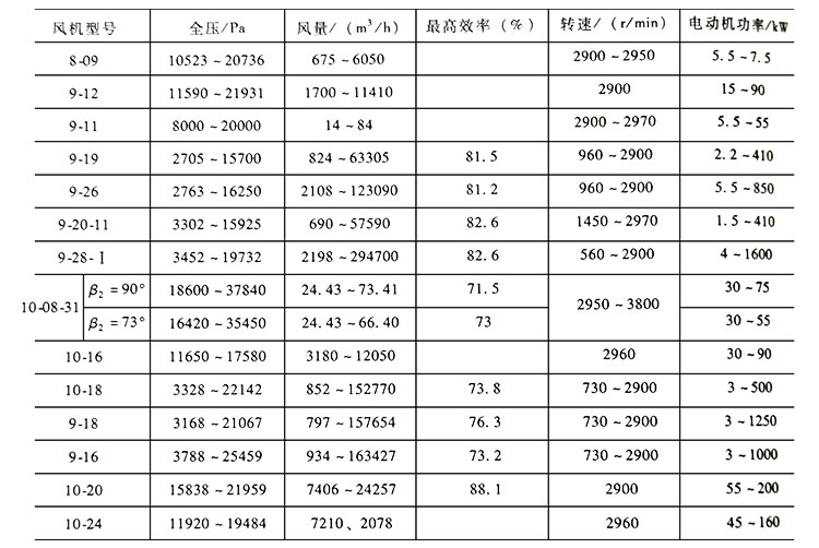 CPC型的全壓最高達10000Pa,風量最大達16200m3/h,轉速800~7650r/min.