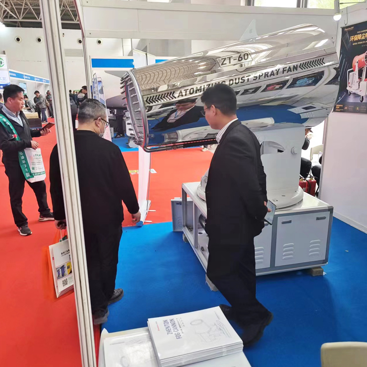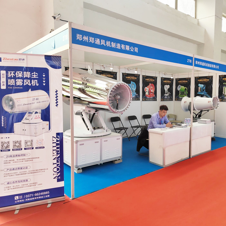 本地展會鄭通出展了霧炮機(jī)系列:移動式30米霧炮機(jī)和錐體式60米霧炮機(jī)。