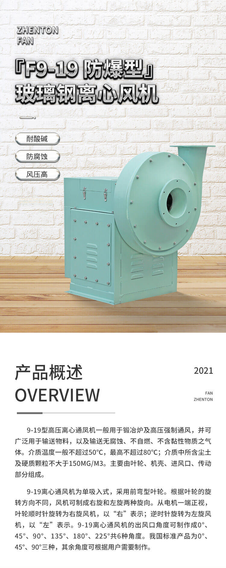適用于化工、紡織、電鍍、實驗室等場所排送含有一定濃度的酸、堿、鹽等腐蝕性氣體,也可以作為一般工廠的建筑物通風換氣用。