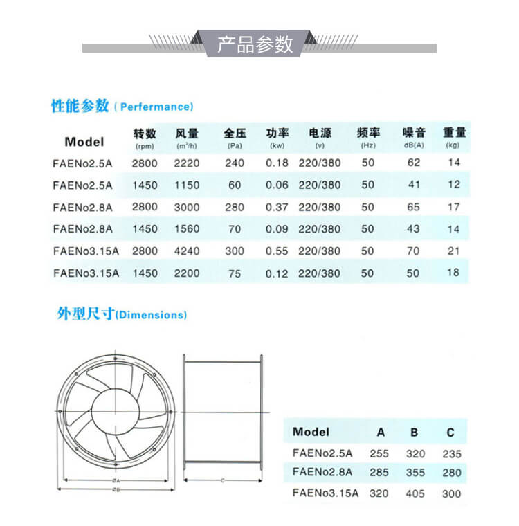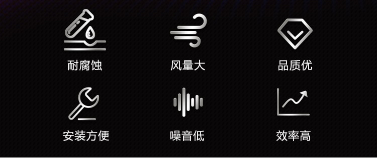 外殼及葉輪均采用聚丙烯鑄壓成型制作,大前掠風(fēng)輪,風(fēng)量大、噪音低;