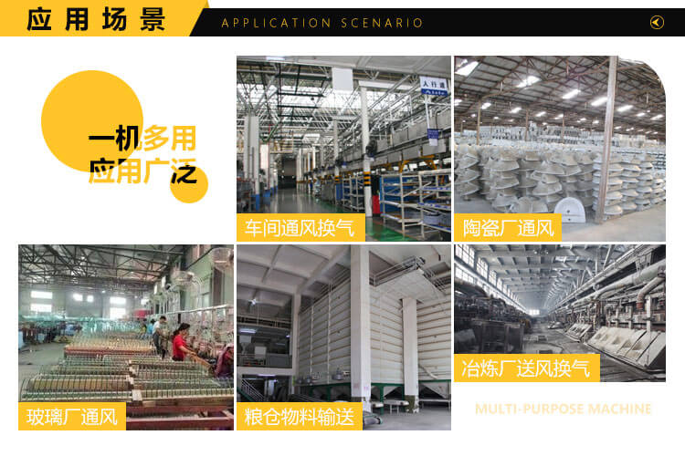 一般用于鍛冶爐、玻璃、陶瓷、電池、無線電等行業(yè)高壓強制送排風,糧食、飼料、礦粉等加工行業(yè)的物料輸送,紙箱機械設備、鋼化玻璃設備等配套使用。