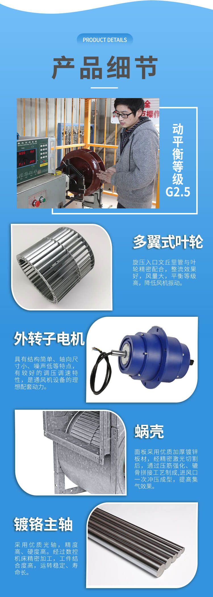 外轉(zhuǎn)子電機直聯(lián)雙進風(fēng)通風(fēng)機,前傾多翼葉輪、低噪音。
