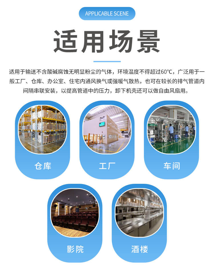 適用于工礦企業(yè)、賓館等大型場所通風(fēng)換氣及中央空調(diào)、潔凈設(shè)備、緊湊型風(fēng)機盤管機組的配套。