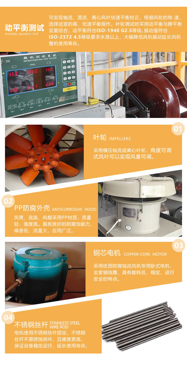 外殼及風(fēng)輪可根據(jù)不同的腐蝕性氣體而采用不同的材質(zhì),噪音低、重量輕、運(yùn)轉(zhuǎn)平穩(wěn)、效率高、防腐性能好。