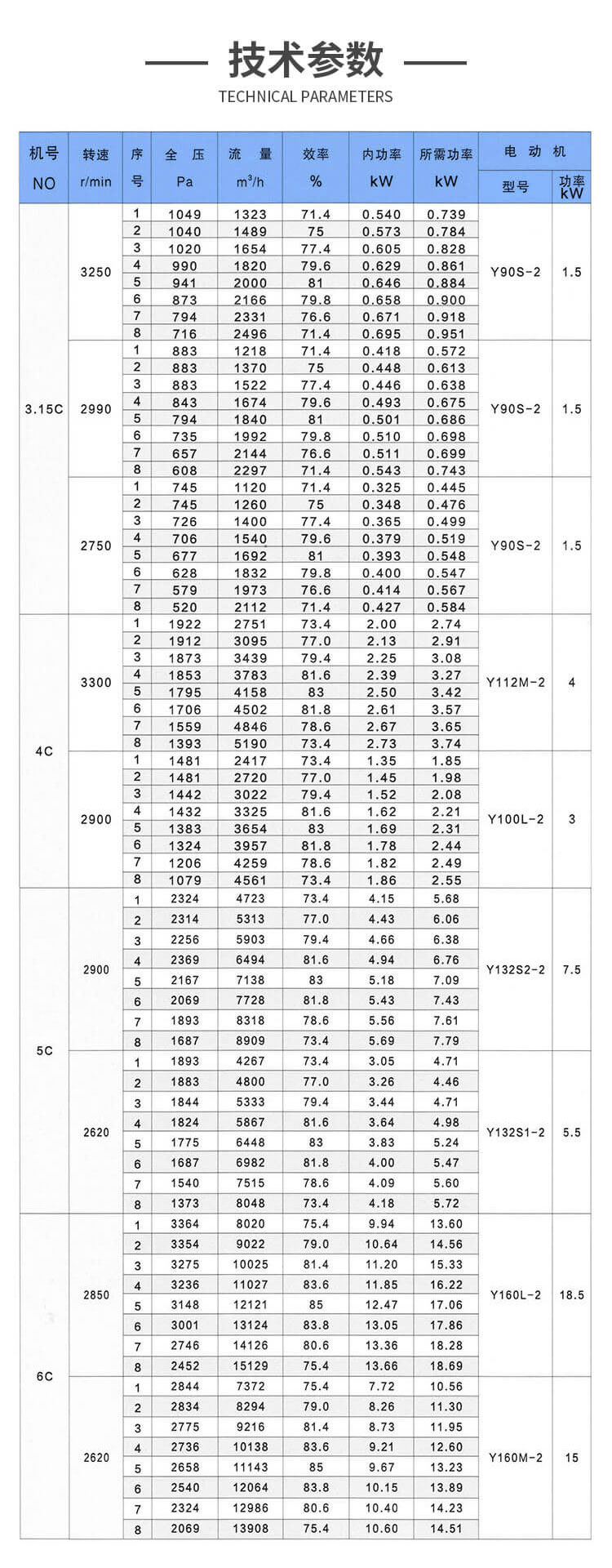 Y5-47-C鍋爐引風(fēng)機(jī),是為適應(yīng)燃用各種煤質(zhì)并配有除塵裝置的工 業(yè)鍋爐(1~20T/H) 而聯(lián)合設(shè)計(jì)的,高全壓效率達(dá)89.5%的新系列引風(fēng) 機(jī),凡進(jìn)氣條件相當(dāng),性能又相適應(yīng)者均可選用,但氣體高溫度不得超過 250°C。