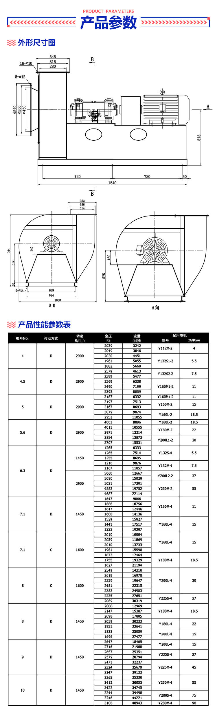 y8-39-D式離心風(fēng)機(jī)屬于高溫用途的高溫離心通風(fēng)機(jī),又稱鍋爐引風(fēng)機(jī),處理氣體介質(zhì)溫度不能超過(guò)280℃。風(fēng)壓大,結(jié)構(gòu)穩(wěn)固,運(yùn)行平穩(wěn)。