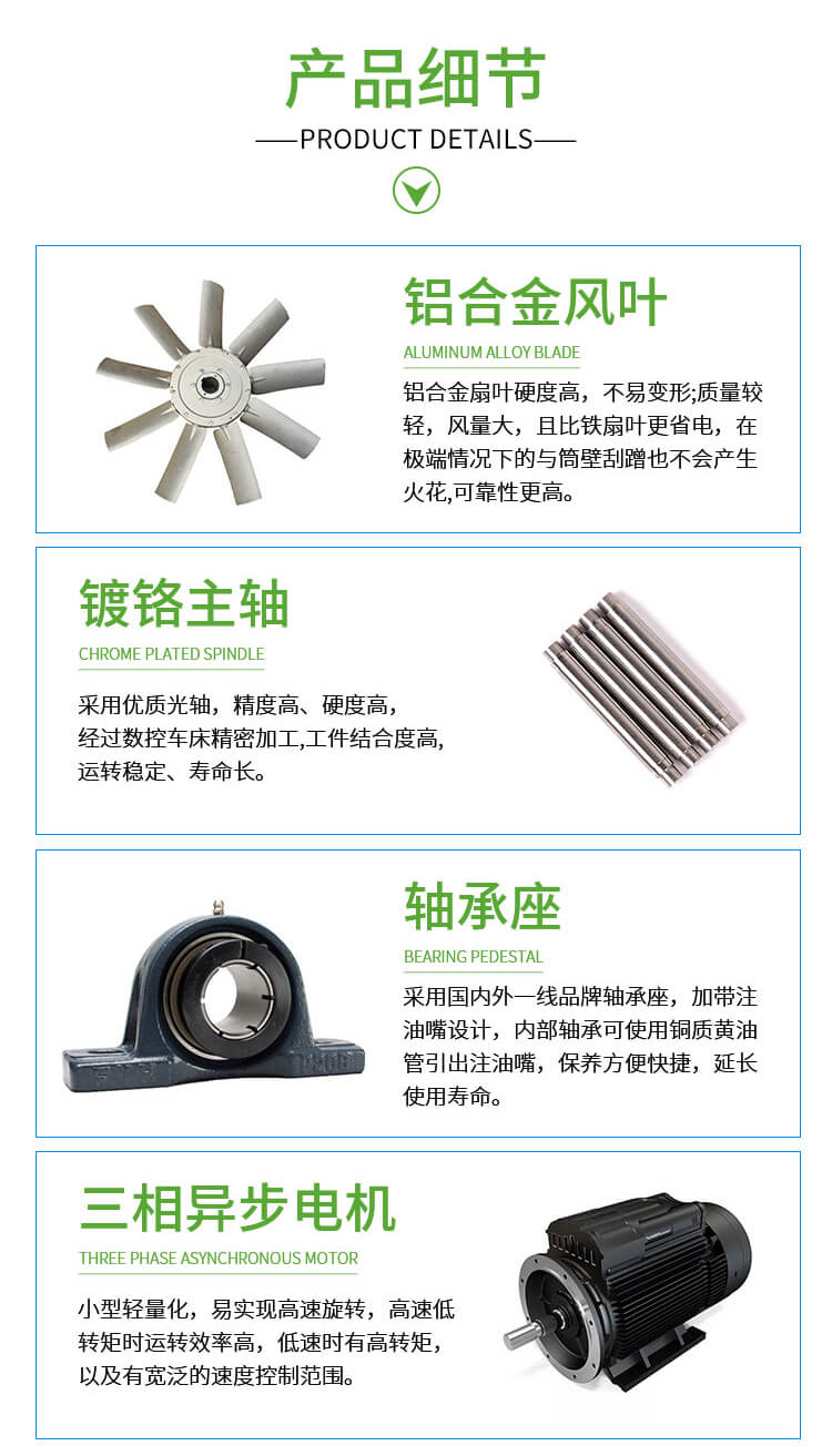 崗位軸流風機具有運轉(zhuǎn)平穩(wěn)、效果高、噪音低、結(jié)構(gòu)堅固、外形美觀大方等特點,是木材烘干窯或有粉塵場所最理想的通風換氣風機。機殼采用高溫烤漆工藝,可在120°以下高濕度環(huán)境長期運行,其葉輪由低鎂鋁合金制成,具有隔爆性能,因此在配用隔爆電機后,可輸送易燃氣體。